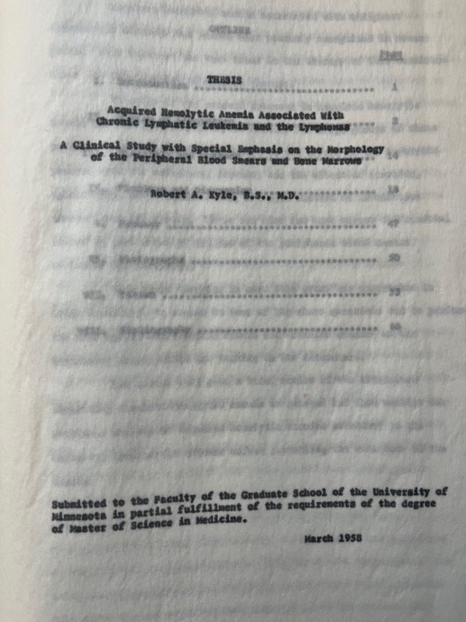 For the next five decades-plus, Kyle would define and give order to the fundamental vocabulary of myeloma, amyloidosis, and other hematological diseases. The emergence of myeloma as a distinct discipline would not have been possible without him.