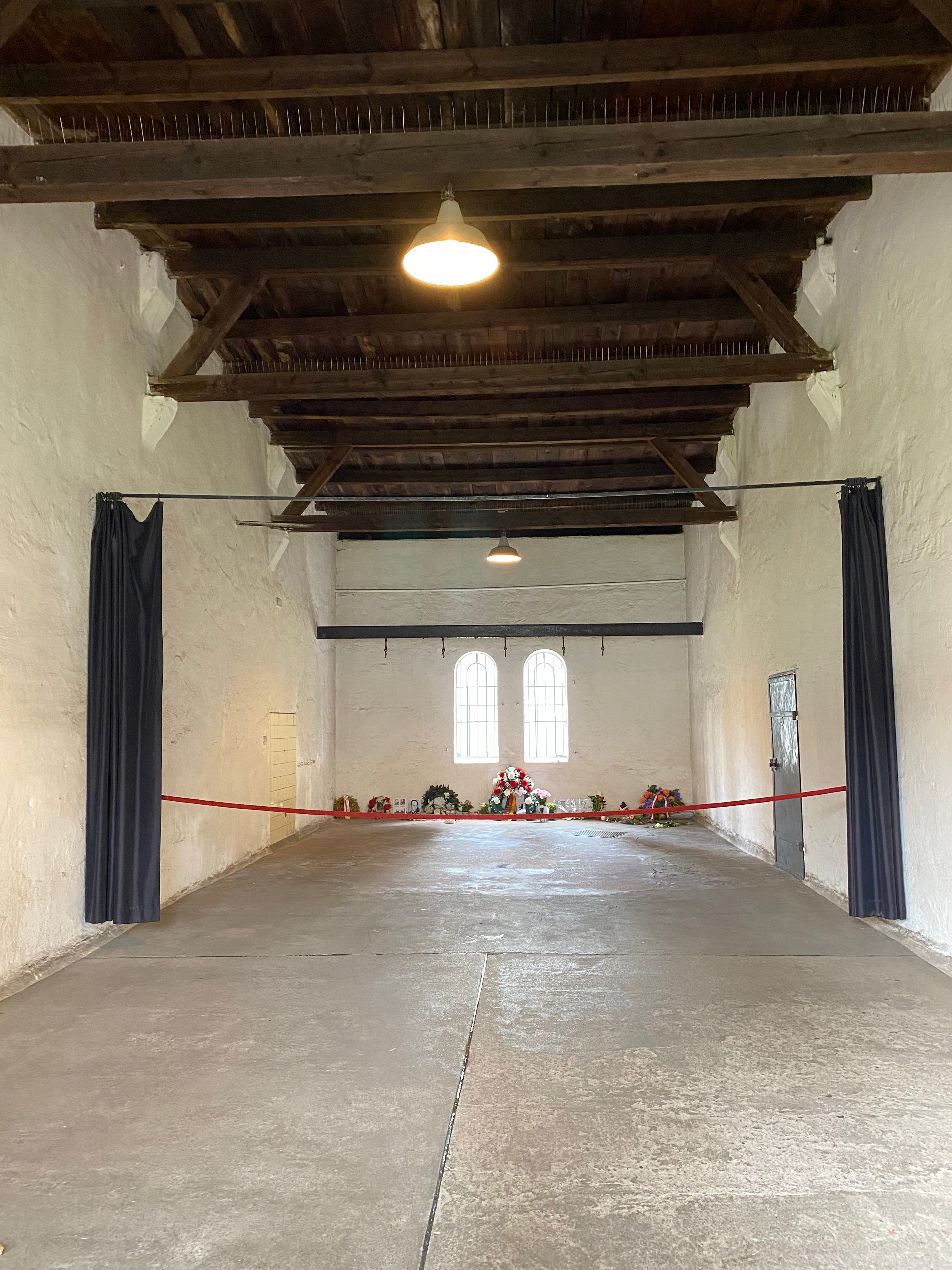 The original execution site has been reduced from four garage-like rooms to two, the remaining rooms are behind the wall in the center of the site, which bears the inscription The Victims of the Hitler Dictatorship in the Years 1933-1945. The open courtyard is the site of annual July 20 commemorations. Led by the President of Germany and include elected officials and cabinet ministers, it is a reminder that this site was once legally sanctioned, as much a function of government then as the ones they are responsible for now. The events are closed by ecumenical services at a nearby church with artwork commemorating the injustice that took place here.